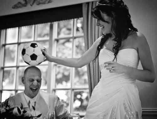 The first time Dad sees his daughter in her wedding dress, for example, many photographers concentrate on the bride’s descent of the stairs but not many notices the tears welling in Dad’s eyes. We do. We notice both – it’s one of the advantages of having two photographers.
