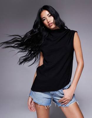 ASOS DESIGN drapey asymmetric sleeveless top in black
