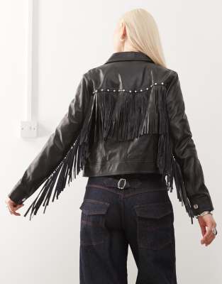 Be the first to review “Barneys originals real leather fringe trucker in black” Cancel reply