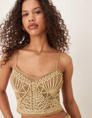South Beach x Misha Grimes floral abstract print flower hardware bandeau bikini top in multi