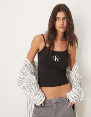 Tops by Calvin Klein Jeans Wear on repeat Scoop neck Fixed straps Logo detail to chest Slim fit