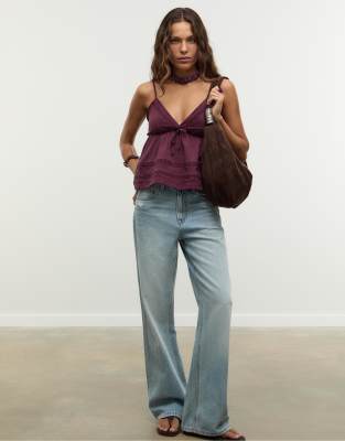 Topshop abstract print plisse wide leg trouser in multi-Black