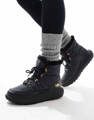 Shoes by Helly Hansen Winter wardrobe staple Quilted finish Pull tab for easy entry Lace-up fastening Signature Helly Hansen branding Round toe Chunky sole Lugged tread