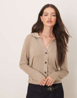 Jumpers & Cardigans by JDY Spread collar V-neck Button placket Long sleeves Regular fit