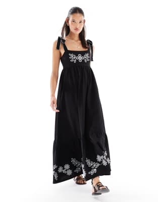 Dresses by Miss Selfridge Square neck Tie straps Floral embroidery Shirred, stretch panel to back Regular fit