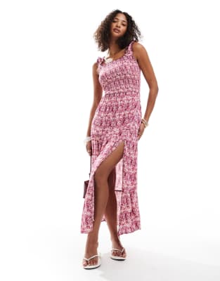 Dresses by Stradivarius All-over print Square neck Elasticated straps Shirred, stretch bodice Thigh-high split Regular fit