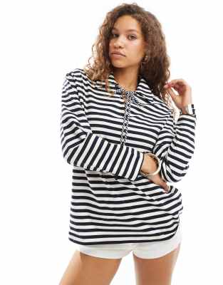 Urban Revivo tie detail relaxed striped sweater in blue and white