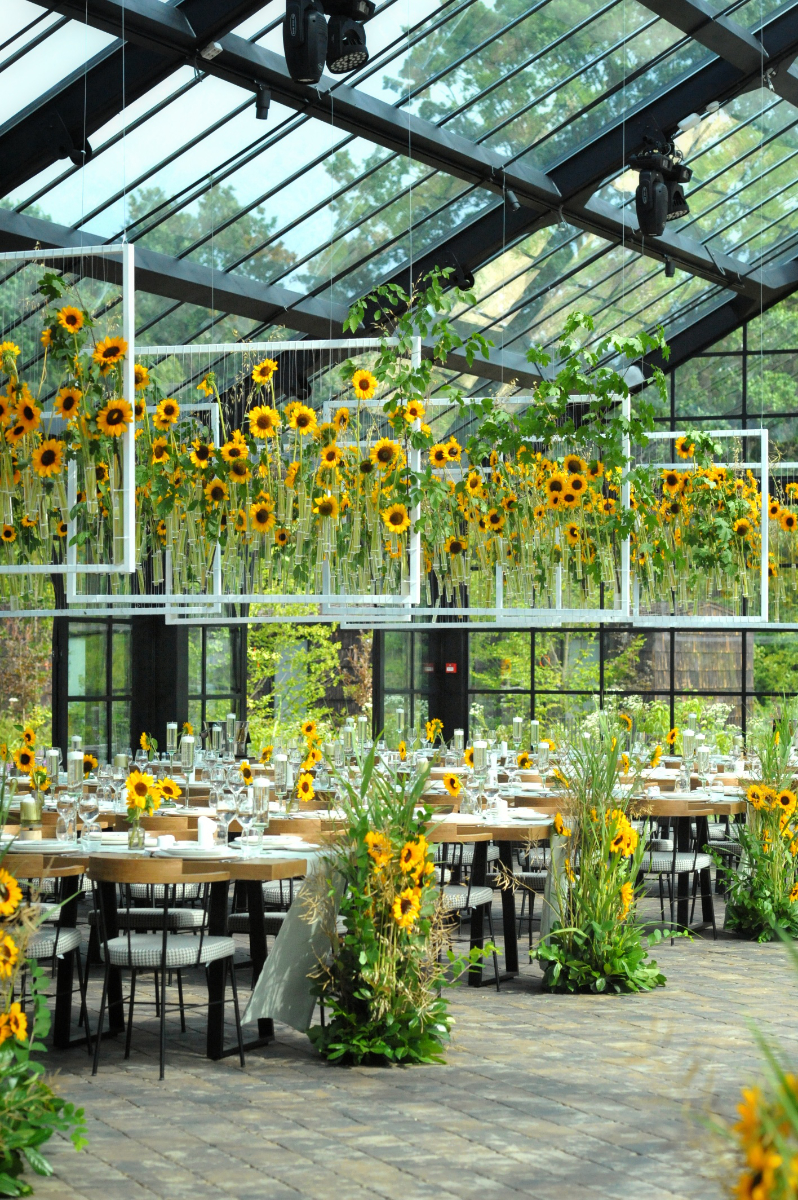 The glasshouse accommodates 250 seated guests indoors and up to 300 guests when the outdoor terrace is used for receptions and dining.
